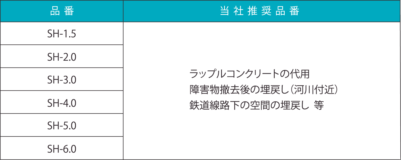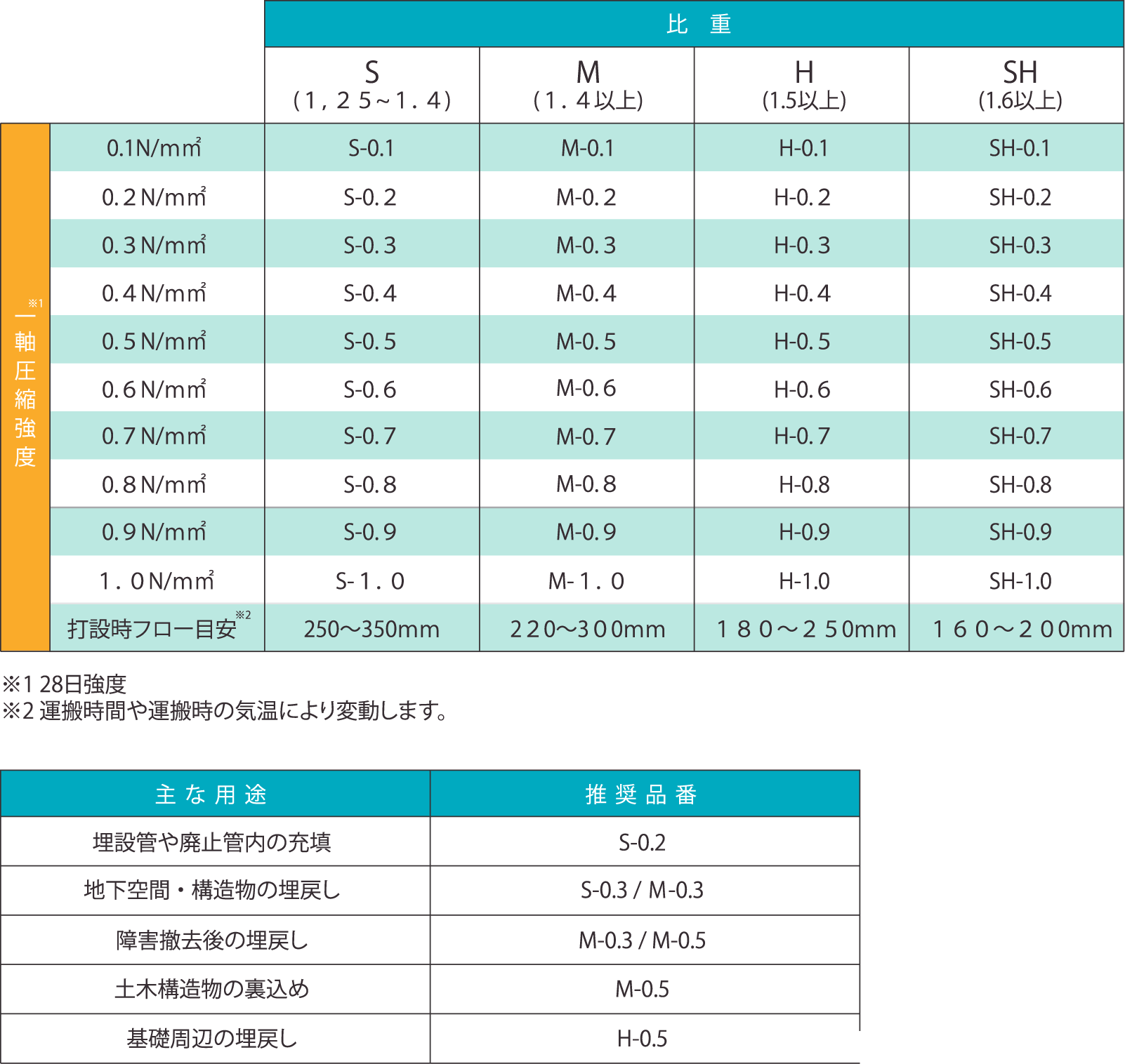 | 品質特性 | 一軸圧縮強度 | 0.3~6.0N/mm² |